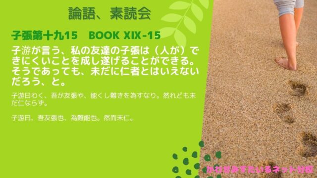 論語、素読会 然れども未だ仁ならず|「論語」子張第十九15 2025年10月28日 たなくらちあき [論語素読会]苟日新、日日新、又日新 子游が言う、私の友達の子張は(人が)できにくいことを成し遂げることができる。そうであっても、未だに仁者とはいえないだろう、と。|「論語」子張第十九15 【現代に活かす論語】 …